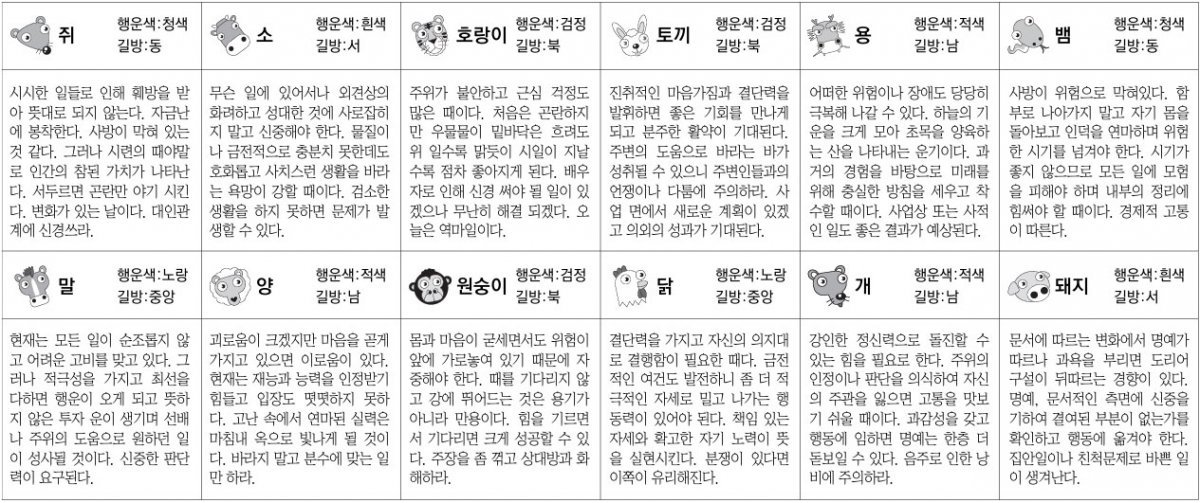 ■ 스포츠동아 오늘의 운세 띠별|운수 좋은 날 (음력: 5월 25일)