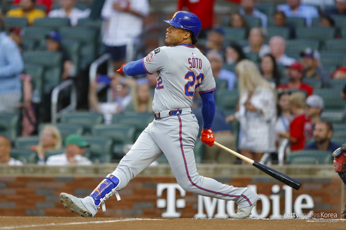 이날 뉴욕 메츠 3번, 우익수로 선발 출전한 소토는 1회 2사 주자 없는 상황에서 스펜서 스트라이더에게 우익수 방면 안타를 때렸다.