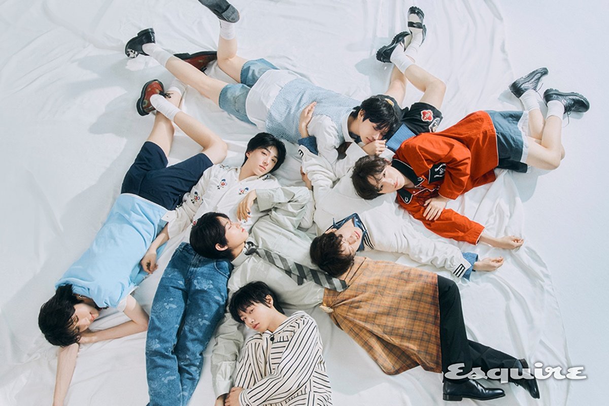 정식 데뷔에 앞서 에스콰이어와 함께한 첫 화보에서는 빈티지 프레피 스타일링을 완벽 소화하며 멤버 개개인의 청량한 소년미를 선보였다. 다양한 표정 연기와 자연스러운 포즈를 선보이며 화사한 비주얼을 자아냈다. 처음 진행한 단체 화보 또한 감각적인 포즈로 각자의 개성이 한데 조화롭게 어우러지는 컷을 완성했다.