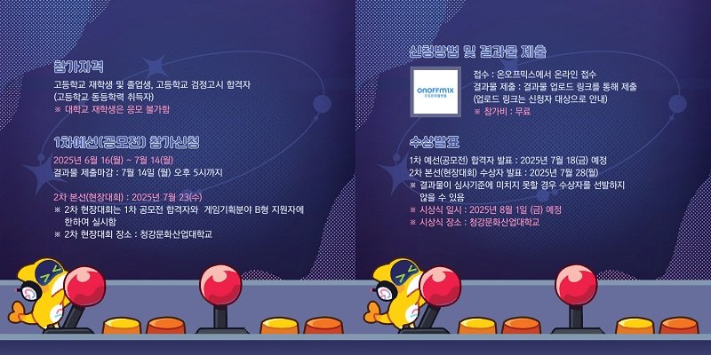 청강대 게임콘텐츠스쿨 원장 염동현 교수는 “우리 스쿨과 유니티 코리아는 게임에 대한 열정 과 비전을 품고 이번 행사를 함께 기획했다. 이 대회는 단순한 경쟁의 장이 아니라 미래를 바꿀 창의적 인재들이 첫걸음을 내딛는 의미 있는 여정의 시작이 될 것”이라고 전했다.