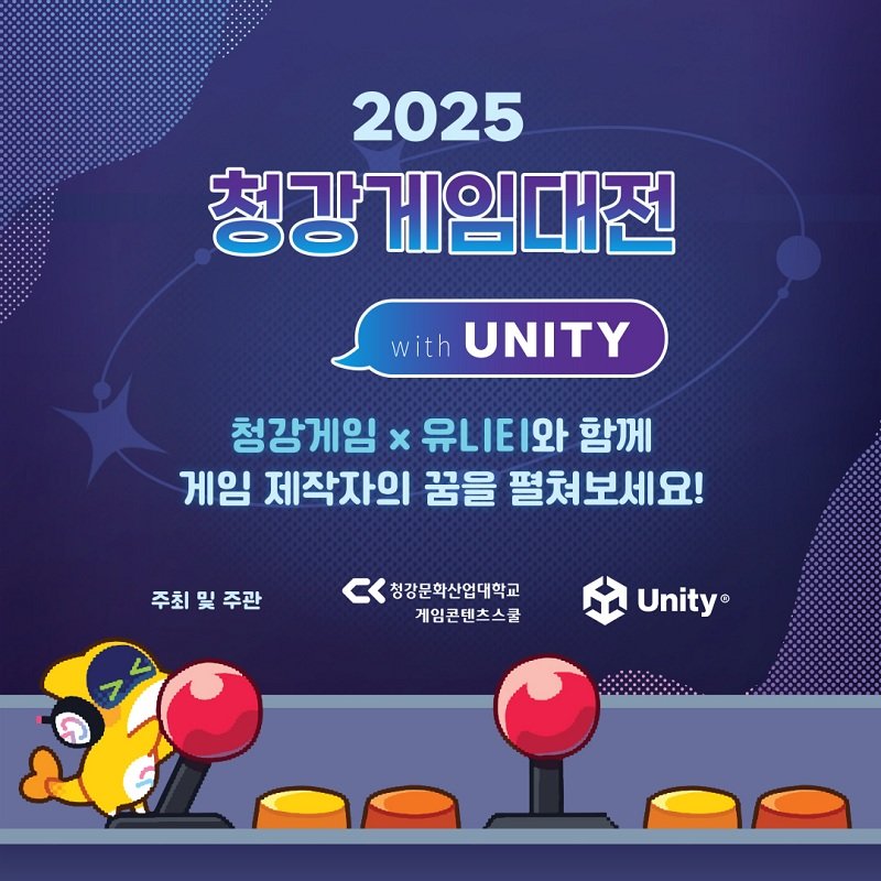 청강문화산업대학교(총장 최성신, 이하 청강대) 게임콘텐츠스쿨은 우수한 게임 개발 인력의 조기 발굴 및 건전한 게임문화 확산을 위하여 게임과 인터랙티브 경험을 제작하고 성장시키는 선도적인 플랫폼인 유니티와 함께 ‘2025 청강게임대전 with Unity’ 대회를 개최한다.