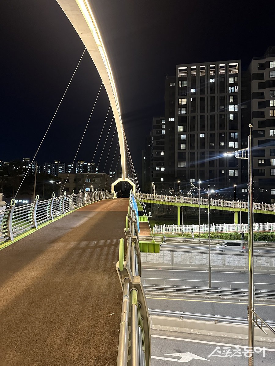 또한 조명을 따뜻하고 편안한 황백색으로 조정하고 육교 상판과 아치형 구조물에 적절히 배치해 시민들이 느끼는 시각적 안정감과 공간의 개방감을 극대화하는데 초점을 맞췄으며 동시에 보행자 통행 공간인 육교 상부에는 균일한 광량을 확보해 야간 시인성을 높이고 보행자의 심리적 불안감을 줄인 것이 특징이다.