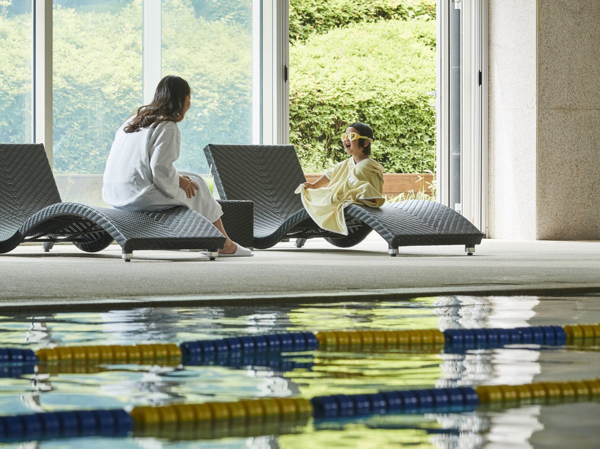롤링힐스 호텔의 실내 수영장은 투숙하는 동안 횟수 제한 없이 이용할 수 있다. 실내임에도 통창 너머로 50여 종의 나무와 식물들로 가꿔진 정원 전망을 갖추고 있다. 이번 패키지 고객에게는 키즈 패션 브랜드 코코릭의 판초 타월과 하트 모양의 물안경을 증정한다.