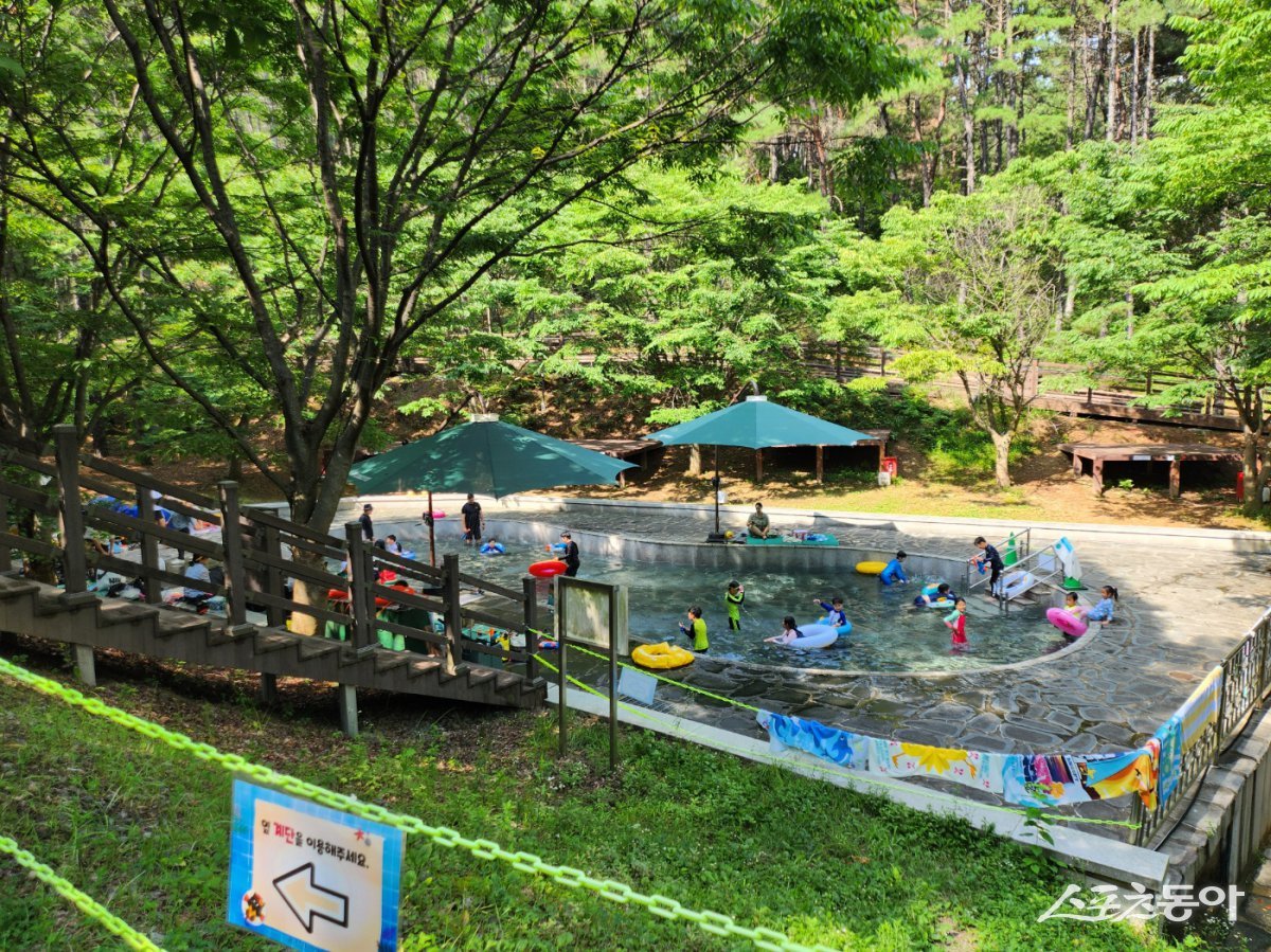 물놀이장은 최대 수심 60cm, 총면적 200㎡ 규모로, 울창한 침엽수림 속에 조성되어 물놀이와 산림욕을 동시에 즐길 수 있다. 또한 그늘막 파라솔, 샤워장, 탈의실 등 편의시설도 고루 갖춰져 있어 가족 단위 방문객의 만족도가 높을 것으로 예상하고 있다.