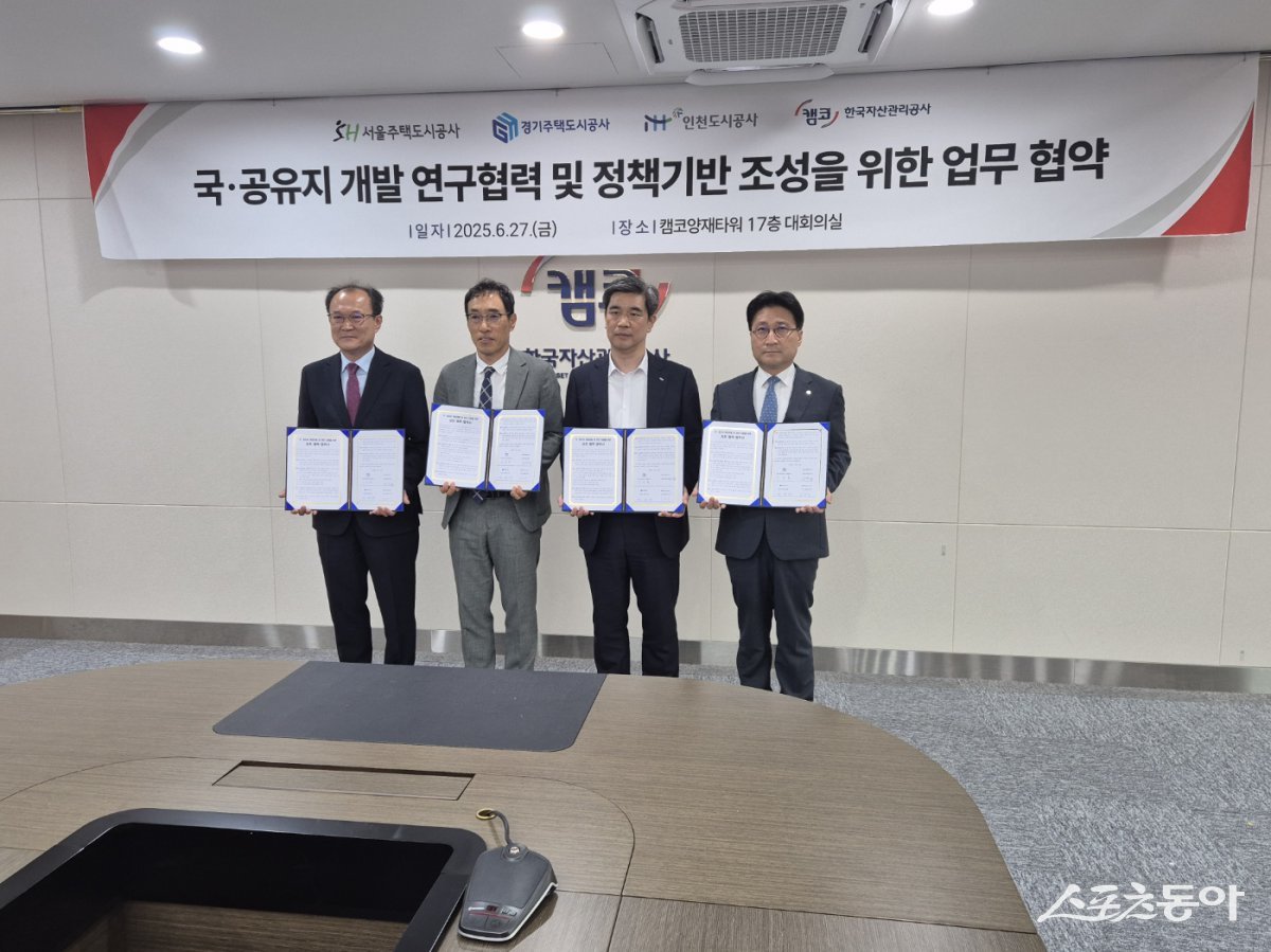 이날 협약식에는 GH 안상태 경영기획본부장, KAMCO 김석환 국유재산부문 이사, SH 심우섭 기획경영본부장, iH 임재욱 도시개발본부장이 참석해 협력 의지를 다졌다.