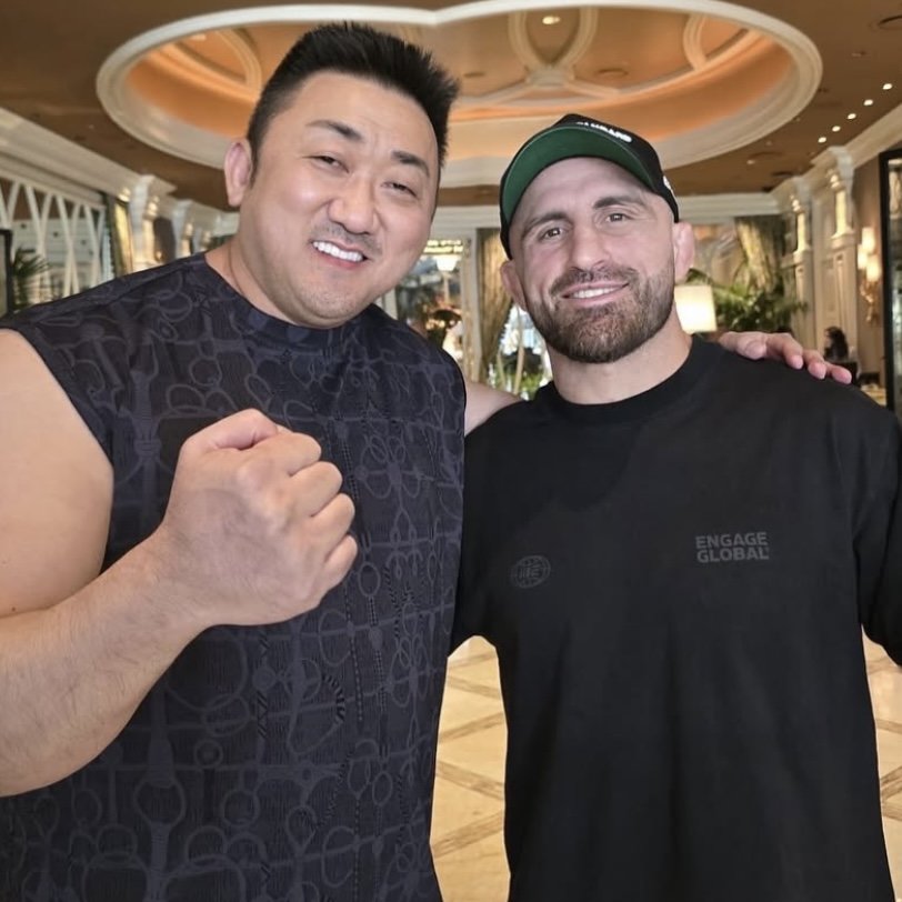 마동석은 27일 소셜미디어에 “What happens in Vegas(베가스에서 일어나는 일)”이라는 글과 함께 여러 장의 사진을 올렸다. 사진 속 그는 헬로키티 머리띠를 하고 마사지팩을 바른 채 장난기 가득한 표정을 지었다. UFC 스타 알렉산더 볼카노프스키와의 인증샷도 눈길을 끌었다.