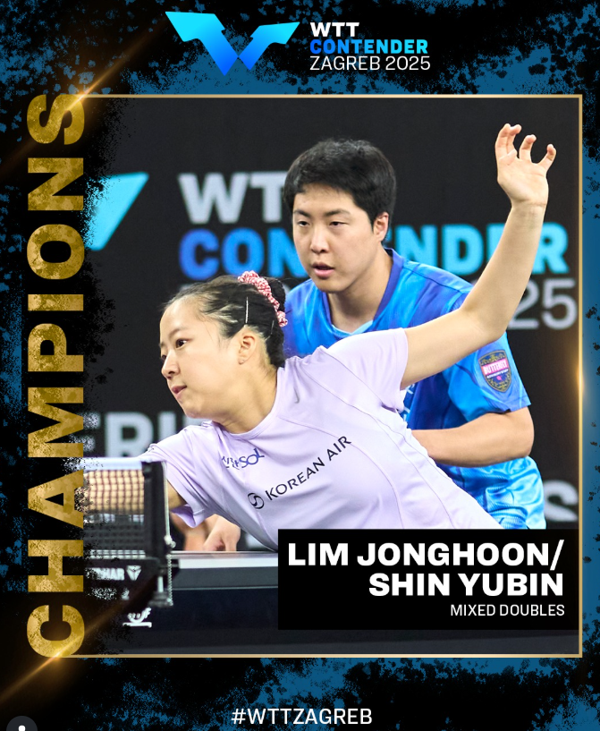 탁구국가대표팀 임종훈(28·한국거래소)-신유빈(21·대한항공·세계랭킹 5위)이 WTT 컨텐더 자그레브 대회 혼합복식에서 우승했다. 22일(한국시간) 끝난 WTT 스타 컨텐더 류블랴나 대회에 이은 2대회 연속 금메달이다.