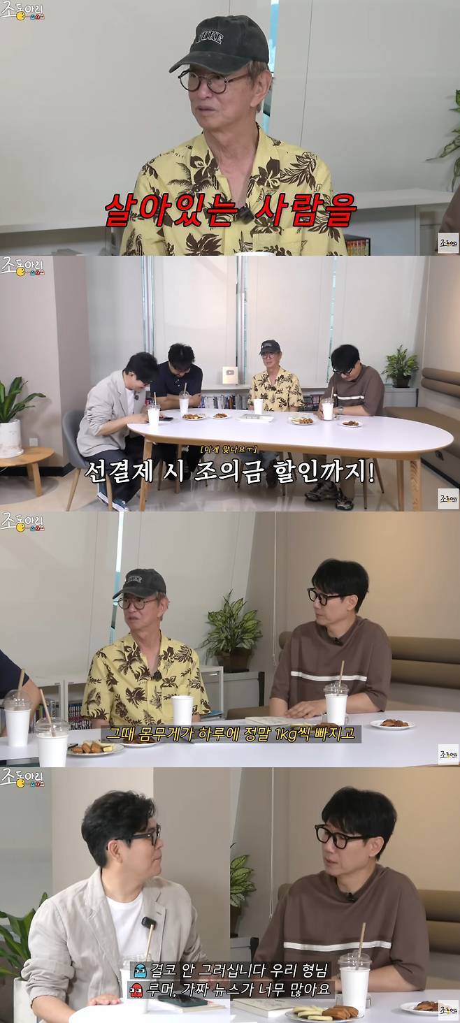 전유성이 자신이 죽었다는 가짜뉴스에 대해 유쾌하게 받아쳤다.29일 유튜브 채널 ‘조동아리’에 출연한 전유성은 “지금 몸이 많이 마르지 않았냐. 틱톡에 보면 죽었다고도 나온다. 할 게 없어서 사람을…”이라며 뜬금없는 ‘사망설’에 대해 직접 언급했다. 그러면서 “정말 열받기도 하고 한편으로는 죽었다고 치고 조의금을 미리 보내주면 좋을 것 같다”고 말해 스튜디오를 웃음바다로 만들었다.