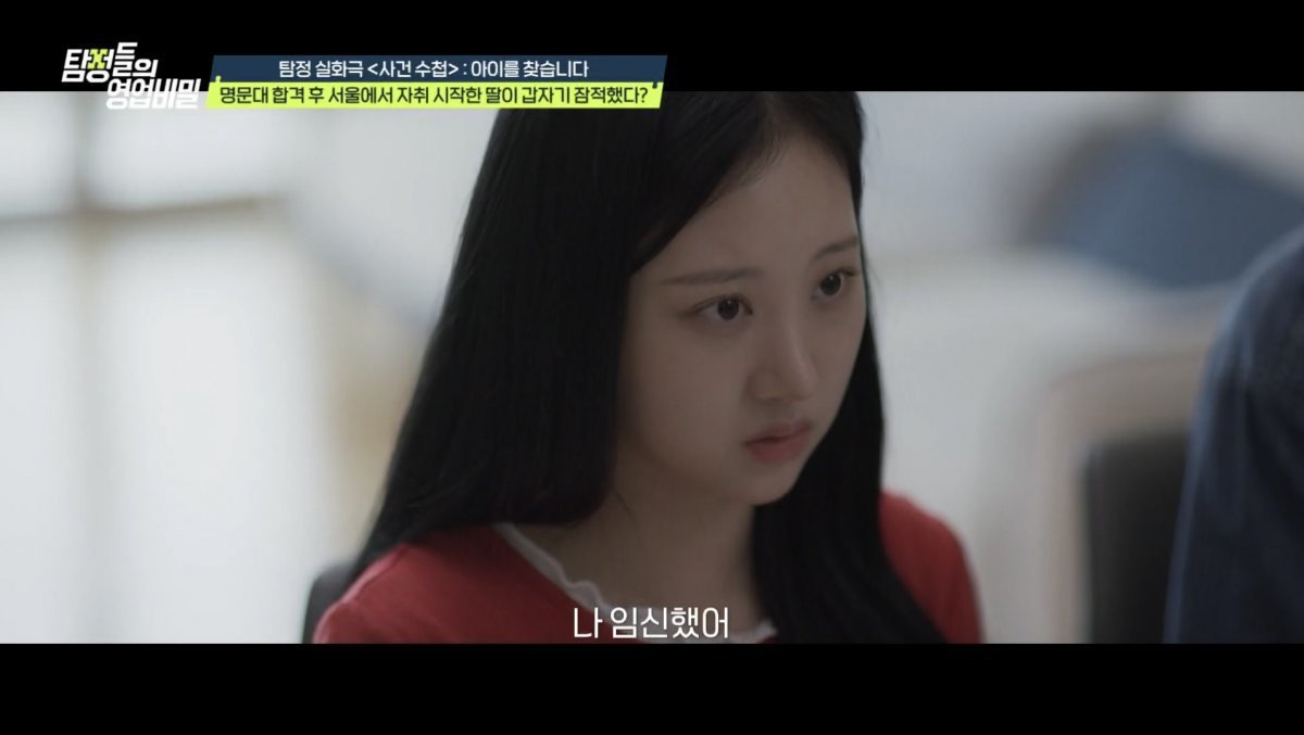 ‘탐정들의 영업비밀’에서 명문대에 입학한 모범생 딸이 혼전임신 후 가출을 했다는 안타까운 실화가 다뤄진다.