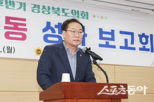 최병준 경북도의회 부의장(의장 직무대리)이 제12대 후반기 도의회 1년 성과보고를 하고 있다. 사진제공 ㅣ 경북도의회