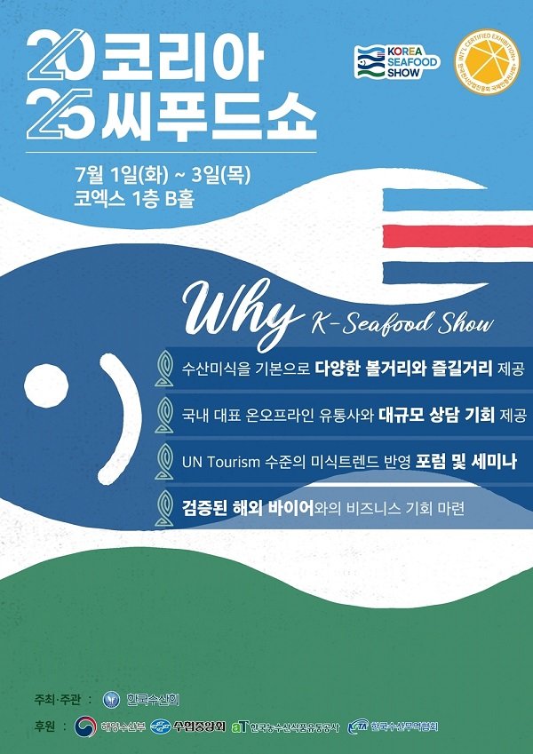 대한민국 대표 수산식품전시회인 ‘제20회 코리아씨푸드쇼(2025 Korea Seafood Show)’가 1일부터 3일까지 사흘간 서울 강남구 삼성동 코엑스 B홀에서 진행된다. 제20회 코리아씨푸드쇼는 ‘K-씨푸드 세계 축제: 건강과 미식(K-Seafood World Festival: A Healthy and Gastronomic)’이라는 주제로 중국, 일본, 필리핀, 말레이시아, 인도네시아, 프랑스, 오만 등 10개국의 해외 기업이 참여해 글로벌 수산시장 트렌드 교류의 장을 마련하고 국내외 150개 기업이 210개 부스로 참가한다.