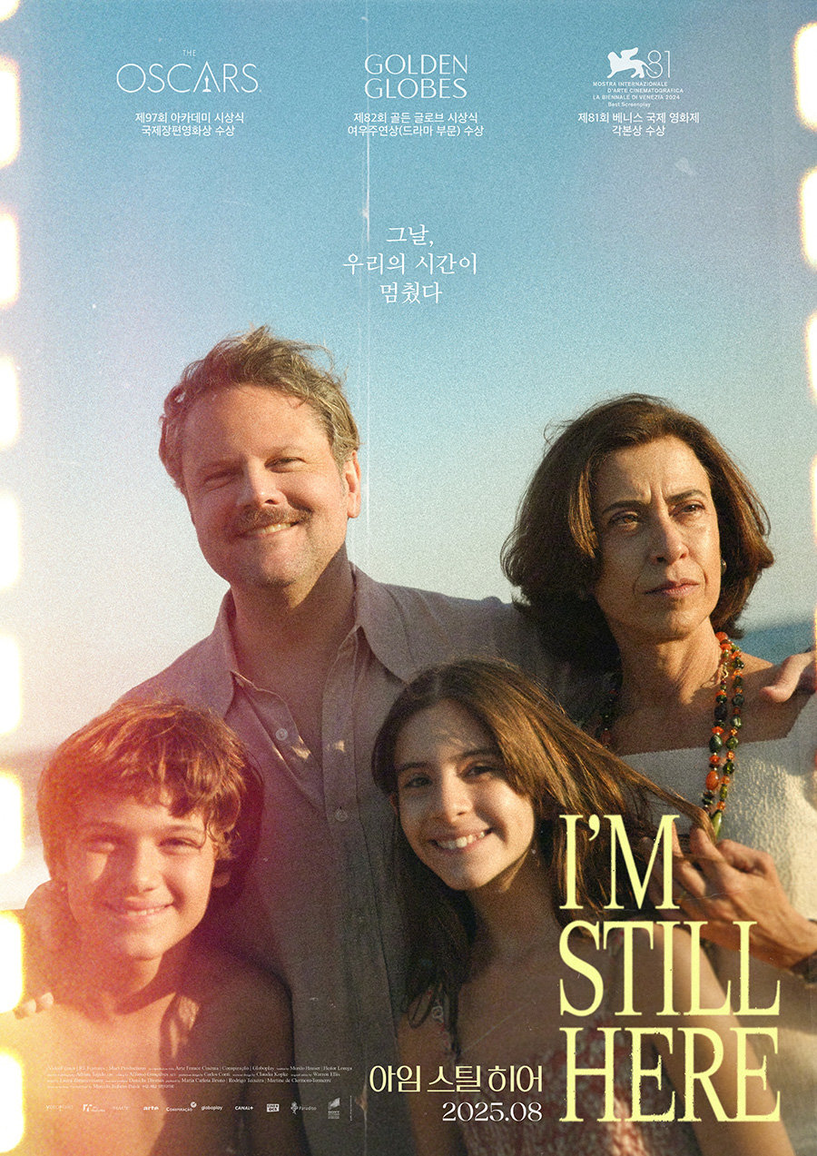 한편, ‘아임 스틸 히어’는 아들인 마르셀로 파이바가 집필한 회고록 ‘Ainda estou aqui’를 바탕으로, 세계적 거장 월터 살레스가 메가폰을 잡았다. 살레스 감독은 “어린 시절 파이바 가족과 친구였다. 해변가 집이 아직도 기억 속에 선명하다. 그래서 이 이야기를 해야 한다고 더 절실하게 느꼈고, 준비 기간만 7년이 걸릴 만큼 모든 정성을 쏟아 부었다. 영화를 보는 동안 관객이 파이바 가족과 함께 있길 바란다”라고 작품에 얽힌 특별한 사연과 연출 의도를 전했다.