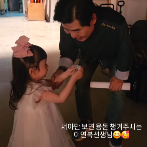 이정현은 1일 자신의 소셜 계정 스토리에 “서아만 보면 용돈 챙겨주시는 이연복 선생님”이라는 글과 함께 영상을 올렸다. 영상 속 서아는 이연복 셰프에게 용돈을 받으며 기뻐하는 모습. 흰 드레스를 입은 채 환하게 웃는 서아의 천진난만한 표정이 눈길을 끌었다.