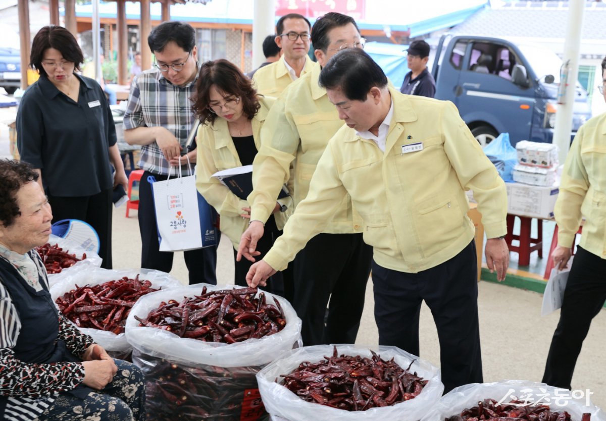 공영민 고흥군수가 지난 1일 하계 휴가철을 앞두고 동강전통시장을 방문해 물가동향을 점검하고 물가안정 캠페인에 참여했다.