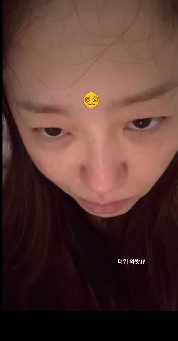 오히려 이마에는 더위에 지친 듯한 표정의 이모티콘을 덧붙여 유쾌함 매력을 뽐냈다.