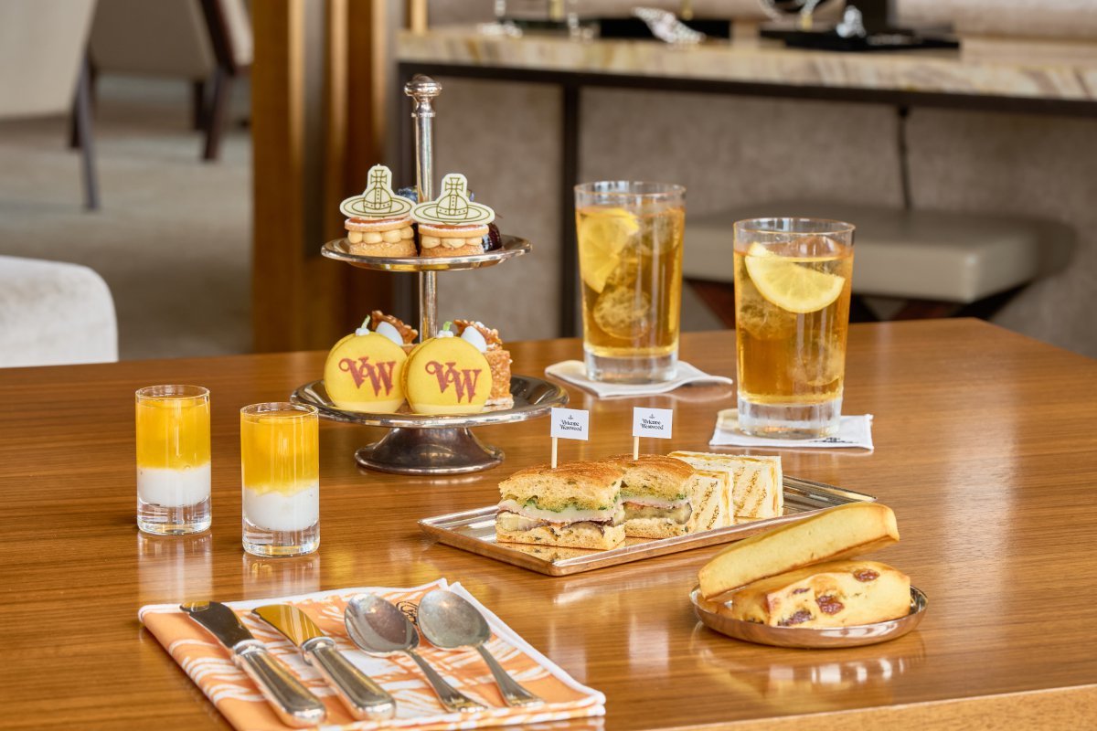 협업 한정판 ‘애프터눈 티’도 선보인다. 비비안 웨스트우드의 색감과 영감을 여름 시즌에 맞춰 망고와 패션후르츠, 살구를 활용해 노란색으로 표현한 점이 특징이다. 비비안 웨스트우드의 로고 등을 오렌지와 살구크림치즈 샌드위치, 애플망고 요거트 젤리 등 8가지 디저트로 해석해 선보인다. 특히, 이번 협업을 위해 비비안 웨스트우드에서 새로 개발한 패턴과 계절 식재료를 활용한 망고 마카롱을 만날 수 있다.