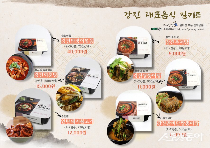 강진 대표음식 밀키트는 총 6종으로 신선한 재료와 각 음식점마다 고유의 레시피를 그대로 담았다.
