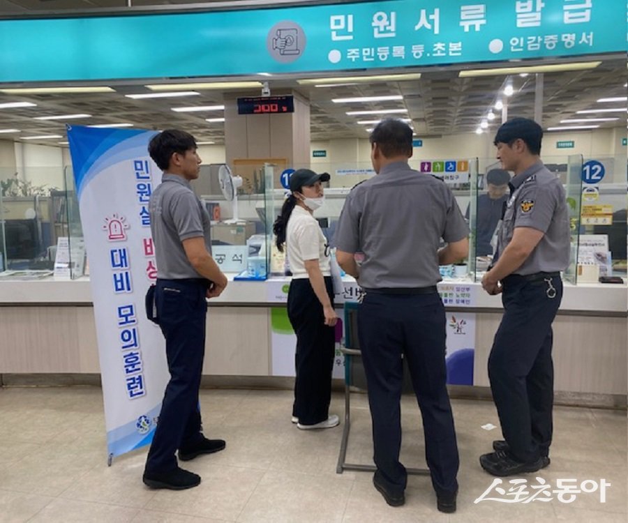 한편, 구는 민원 응대 과정에서 발생할 수 있는 다양한 비상상황에 대비하기 위해 매년 반기별 모의훈련을 실시하고 있으며 전체 22개 동 행정복지센터도 관할 지구대와 함께 오는 7월 말까지 모의훈련을 순차적으로 진행할 예정이다.