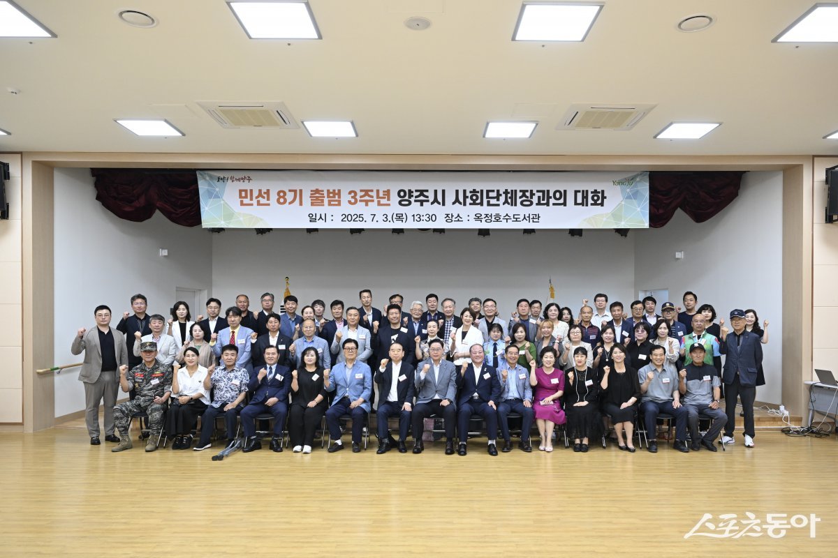 양주시(시장 강수현)가 3일 관내 옥정호수도서관 대강당에서 ‘민선 8기 출범 3주년 사회단체장과의 간담회’를 열고 지난 3년간의 시정 성과를 공유하는 뜻깊은 자리를 마련했다.