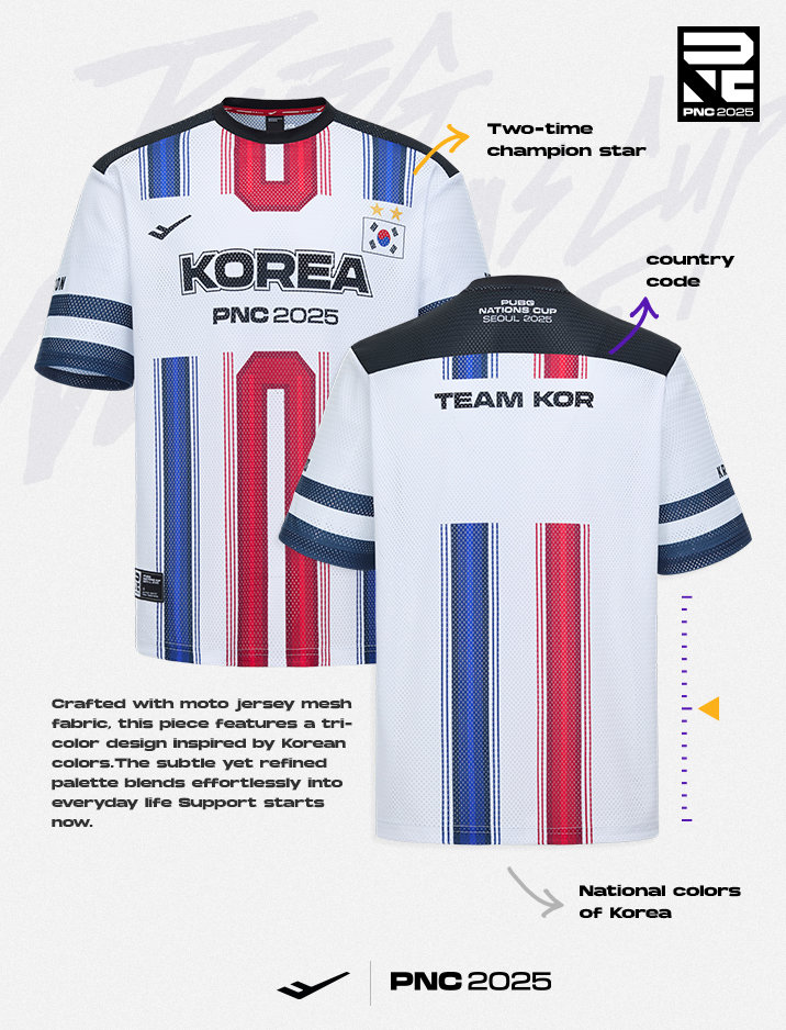 또한 대회 개최를 기념해 PNC 2025 한정판 공식 MD도 선보인다. 팬들이 현장의 열기를 함께 느끼고, 이번 대회의 추억을 오래 간직할 수 있도록 기획된 이번 MD는 ▲대한민국 대표팀 유니폼 ▲선수명 인쇄가 가능한 마킹 키트 ▲기념 티셔츠 ▲자켓 ▲짐쌕 ▲대한민국 응원 타올 ▲양말 ▲키캡 세트 ▲장패드 등으로 총 9종으로 구성됐다.