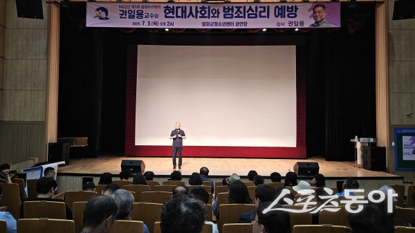 제3회 봉화아카데미 행사에서 권일용 교수가 ’현대사회와 범죄심리 예방‘ 특강을 하고 있다. 사진제공 ㅣ 봉화군