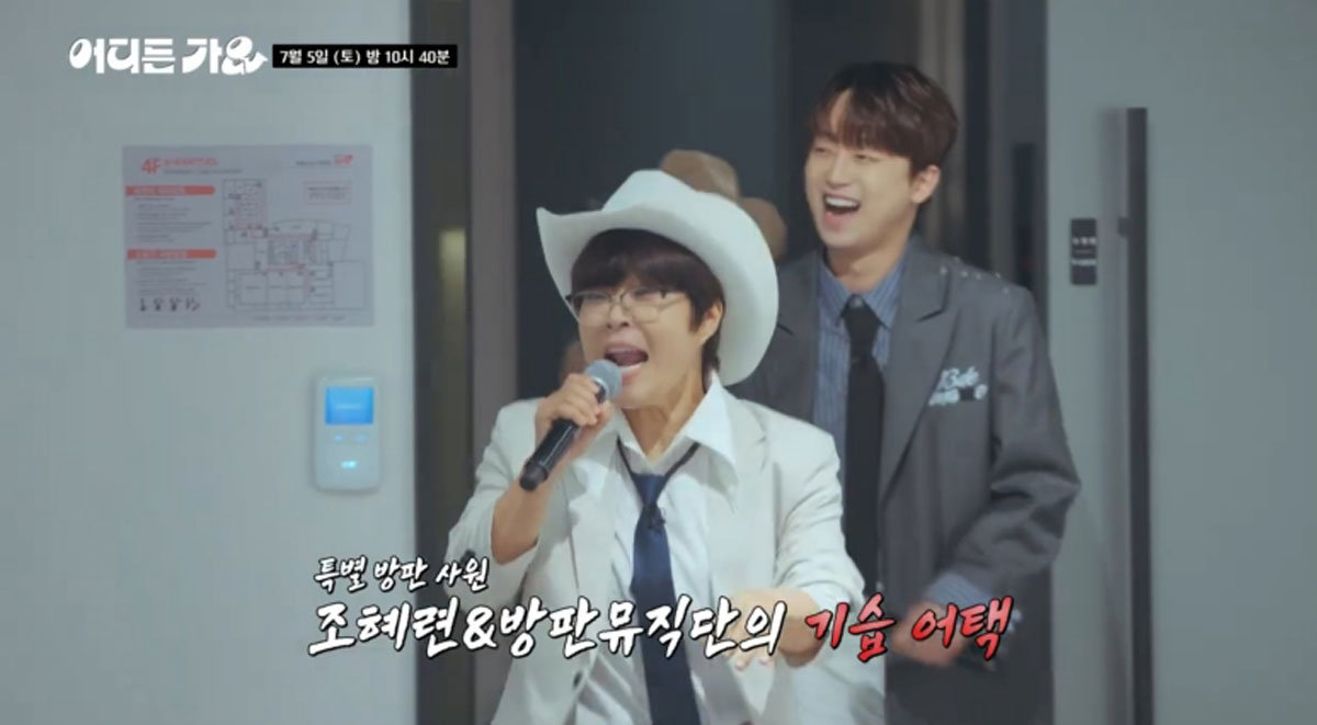 5일 오후 10시 40분 방송되는 KBS 2TV 음악 예능 프로그램 ‘방판뮤직 : 어디든 가요’에서는 서울 강남구의 패션 회사를 찾는 ‘방판뮤직단’ 뮤지션들과 특별 게스트 조혜련의 모습이 그려진다.