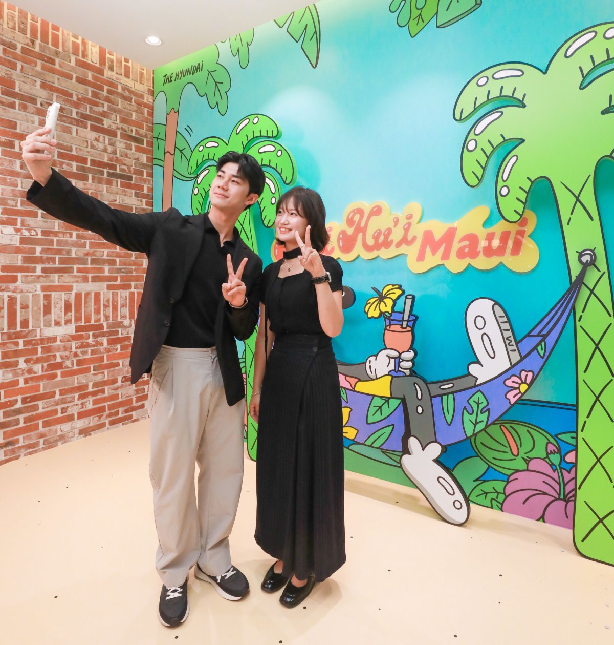현대백화점 판교점이 8월 말까지 진행하는 ‘후이 후이 마우이’ 여름 테마 행사 기간에 맞춰, 팝 아티스트 스티븐 해링턴과 함께한 하와이 콘셉트의 연출을 선보였다.