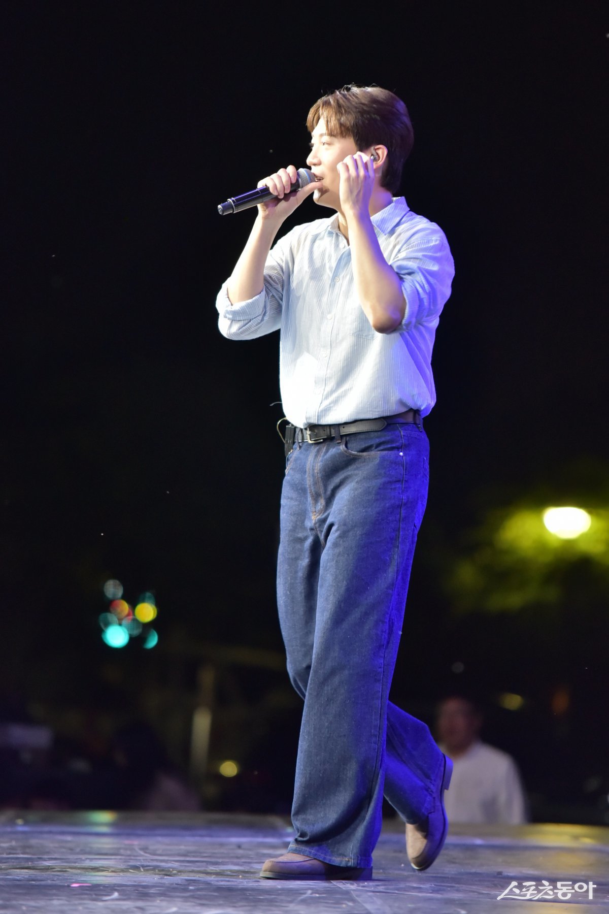 지난 5일 화성특례시 북부권 시민들을 위한 ‘가족사랑 콘서트’에서 가수 존박이 열정적인 무대를 선보이고 있다. 사진제공|화성시
