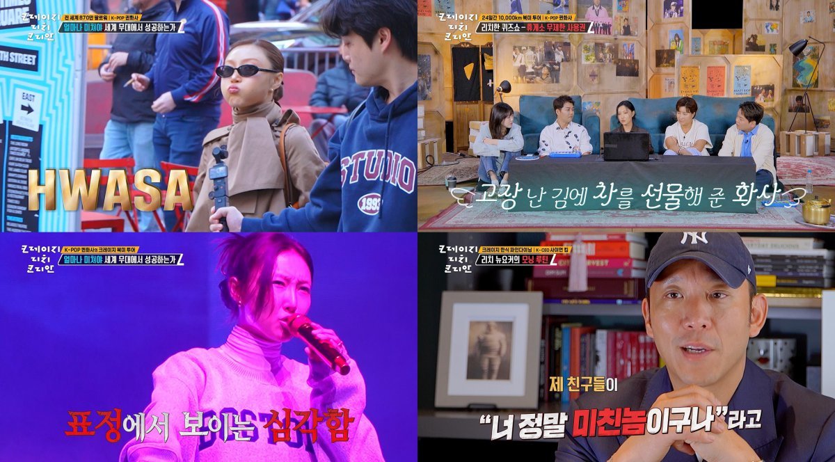 북미 11개 도시를 방문하는 첫 단독 솔로 북미투어를 떠난 화사는 타이트한 일정에도 뉴욕의 유명 맛집과 랜드마크를 찾아가 영상을 촬영하며 워커홀릭다운 면모를 뽐냈다. 또 피로가 누적된 상태에서도 운동을 빼먹지 않는 성실한 모습으로 MC들의 감탄을 유발했다.