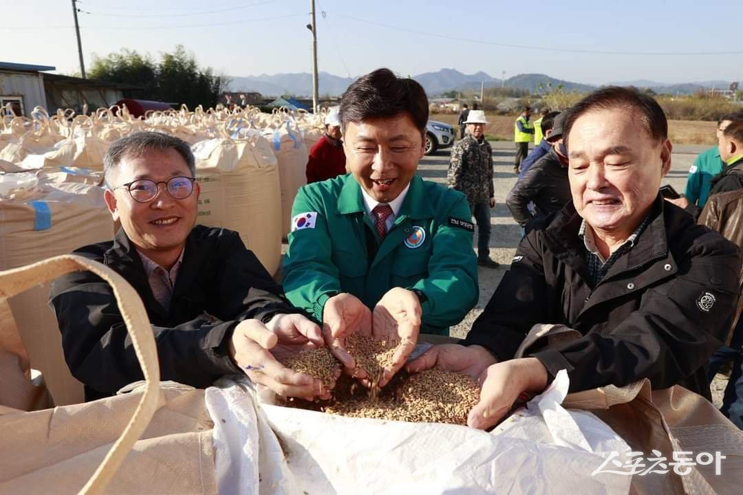 최근 수매현장을 방문한 김철우 보성군수. 사진제공=보성군