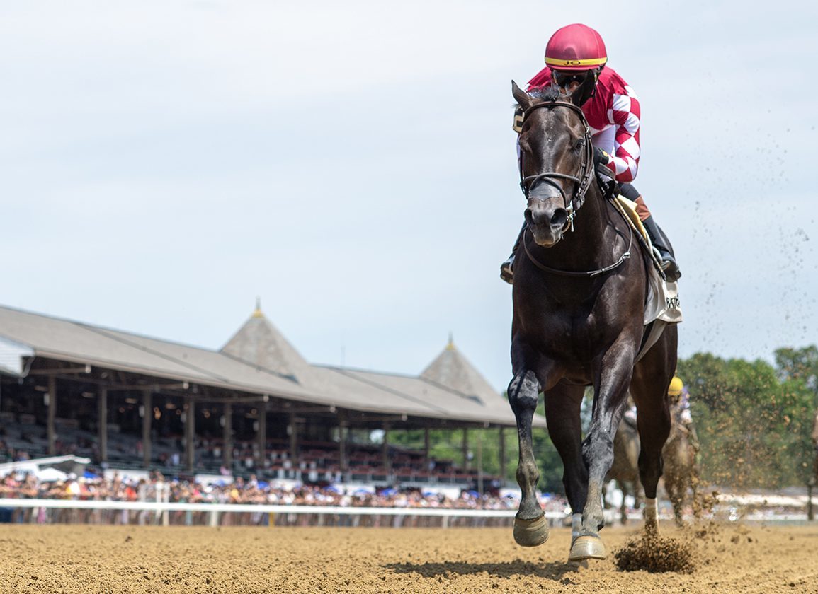 한국마사회 씨수말 ‘닉스고(KNICKS GO)’의 자마 ‘유잉(EWING)’이 6일(한국시간) 미국 뉴욕 사라토가 경마장에서 열린 신마 경주(2세 MSW<미승리신마>, 1100m)에서 12마신 차 압승을 거두며 데뷔전에서 강렬한 인상을 남겼다.