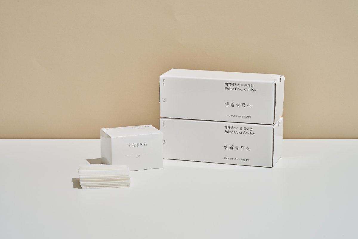 특대형 60매와 일반 20매 등으로 구성했다. 특대형의 경우 가로 200㎜, 세로 255㎜다. 넓은 면적으로 더 많은 염료를 빠르게 흡수 가능하며, 롤타입으로 60매가 담긴 박스에 절취선이 있어 한 장씩 뜯어서 사용할 수 있다. 일반형은 가로 125㎜, 세로 200㎜의 실용적 사이즈로 소량 빨래에 적합하다.