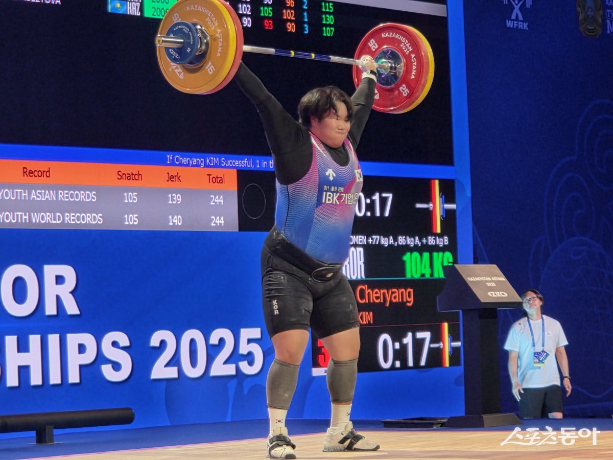 광주체육고 김체량 선수가 지난 9일 카자흐스탄 아스타나에서 열린 ‘2025 아시아 유소년 역도선수권 대회’ 여자+77kg이상 급에서 우승을 차지했다. 사진제공=광주시교육청