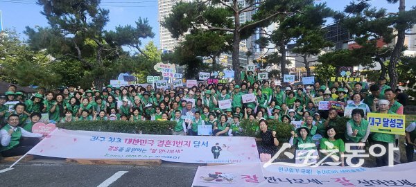 대구 달서구(구청장 이태훈)는 세계인구의 날을 맞아 성당네거리에서 대구시새마을회와 함께 ‘잘 만나보세, 뉴(NEW)새마을운동’ 캠페인을 성황리에 개최했다고 밝혔다.이번 캠페인은 초저출생으로 인한 인구위기의 심각성을 알리고, 결혼과 출산을 장려하는 문화의 전국적 확산을 위한 기반을 마련하고자 마련됐다. 현장에는 달서구 새마을회를 비롯해 대구시 새마을회, 구·군 새마을회, 새마을문고중앙회 등 270여 명의 새마을 회원이 참석해 의미를 더했다.