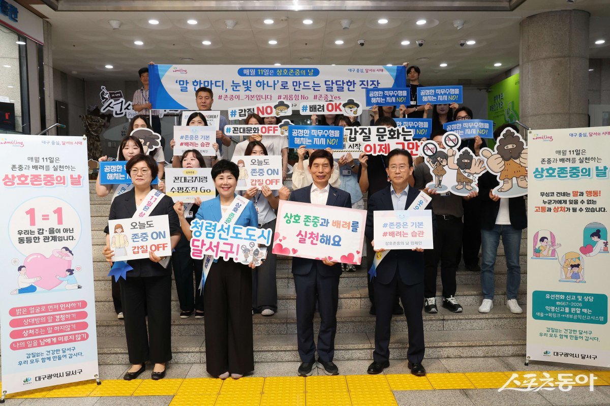 이태훈 대구 달서구청장과 직원들이 존중하는 직장문화 만들기 캠페인을 진행하고 있다. 사진제공 ㅣ 달서구