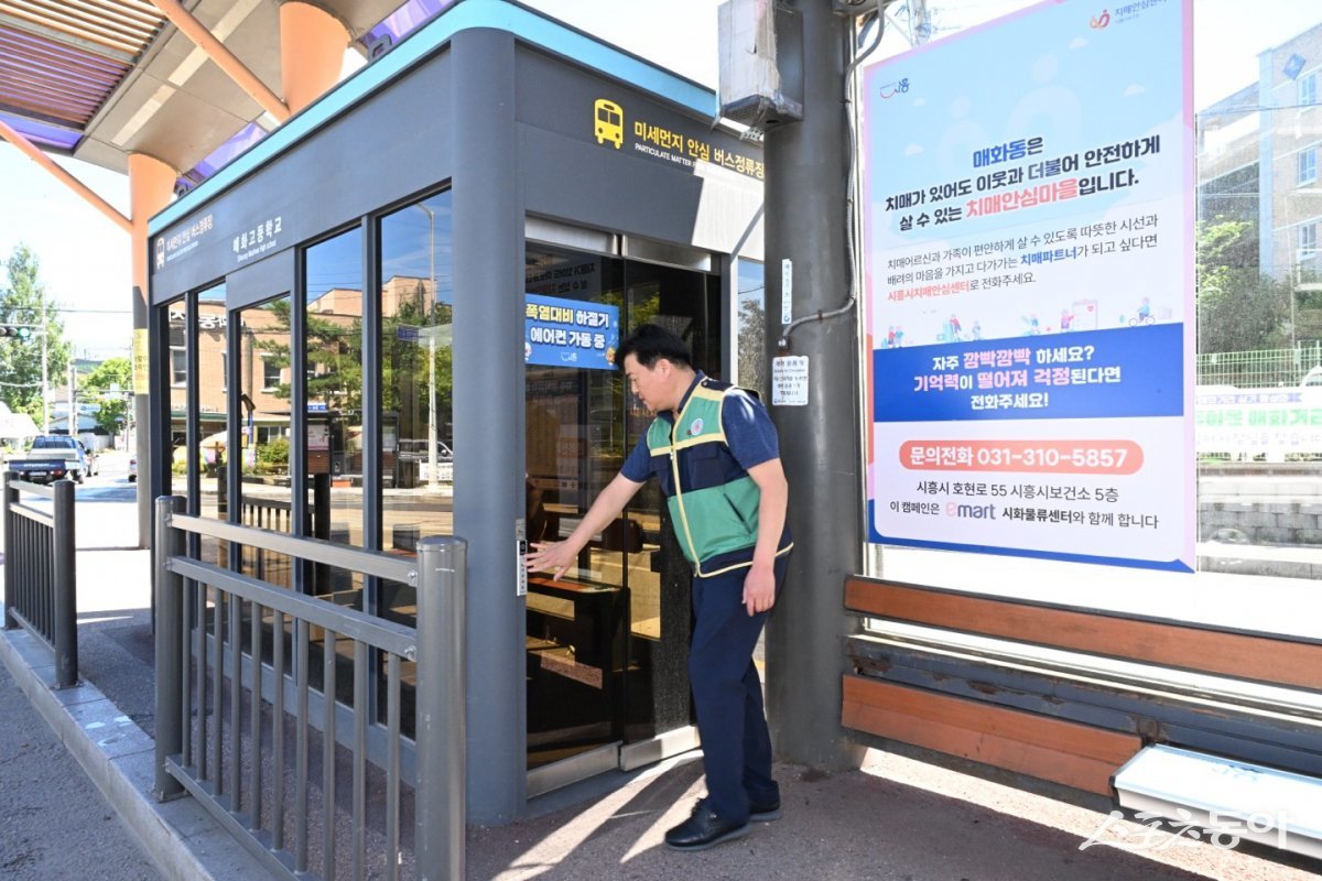 임 시장은 지난 12일 매화동에 설치된 생활밀착형 폭염저감시설인 ‘스마트셸터’ 현장을 직접 방문해 시설 운영 상황을 점검했다. 사진제공|시흥시