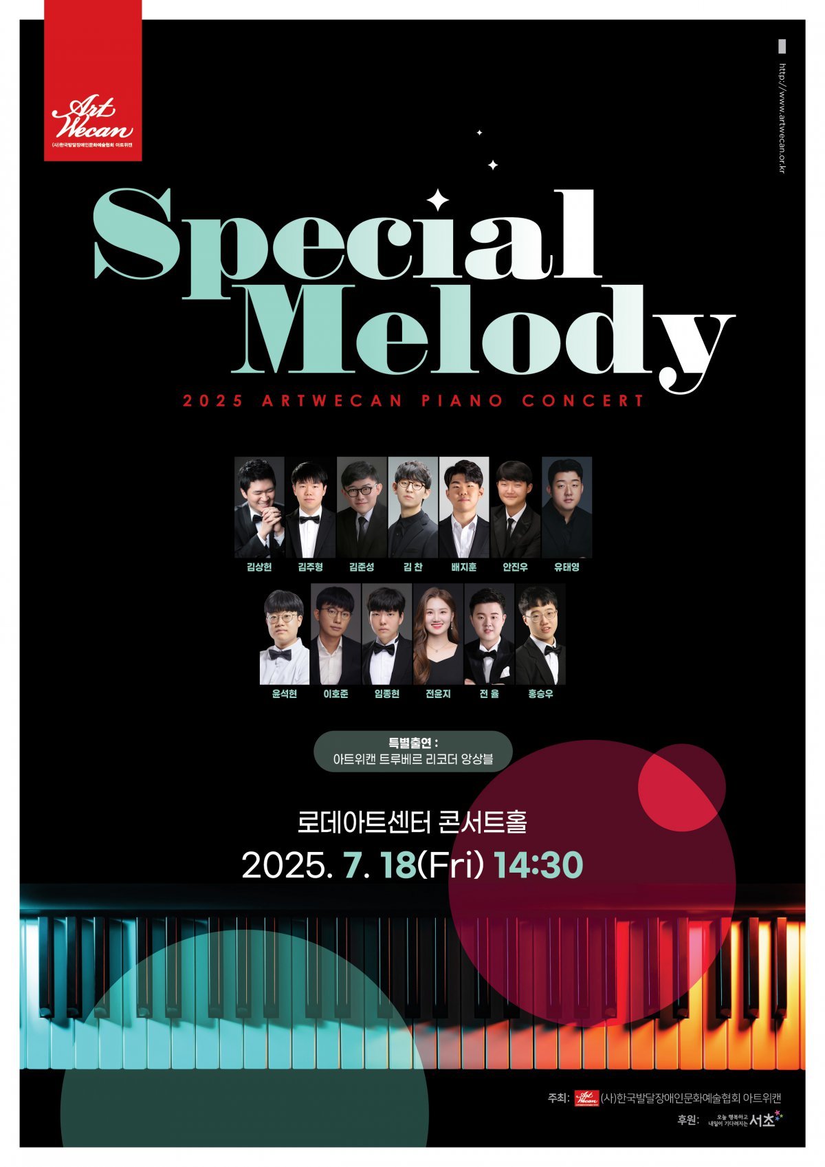 (사)한국발달장애인문화예술협회 아트위캔(대표 왕소영)이 주최하는 ‘2025 아트위캔 피아노콘서트 스페셜 멜로디(Special Melody)’가 7월 18일 오후 2시 30분, 서울 서초구 로데아트센터 콘서트홀에서 열린다. 서초구 사회복지기금(장애인복지계정) 공모사업의 일환으로 진행되는 이 콘서트는 올해 12회를 맞으며 클래식 팬들의 꾸준한 관심을 받고 있다.