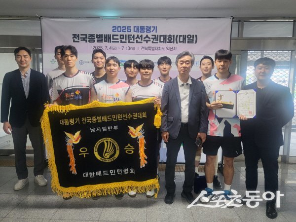 김천시청 배드민턴단이 ‘2025 익산 대통령기 전국종별배드민턴선수권대회’서 우승하고 기념 촬영하고 있다. 사진제공 ㅣ 김천시
