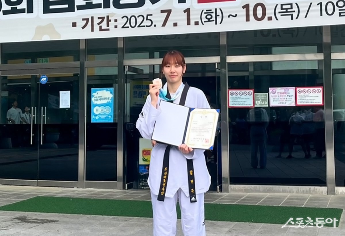 협회장기 태권도겨루기 3위위 차지한 영산대 태권도학과 김민주 학생. (사진제공=영산대)