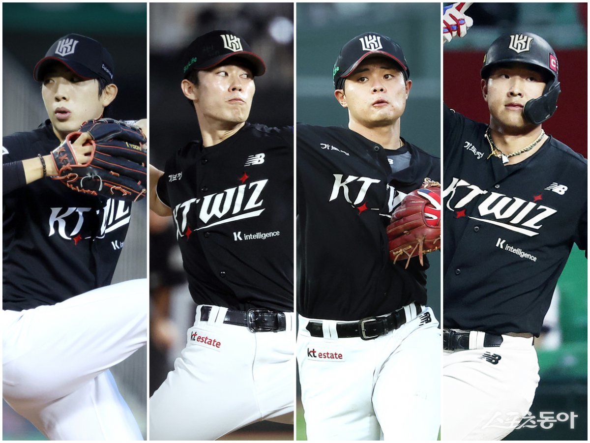 KT가 전략적인 선수 영입과 육성 효과를 동시에 내고 있다. 전반기 10승을 올린 선발 오원석과 원상현, 권동진, 안현민(왼쪽부터)의 활약 모두 트레이드 또는 육성의 결실이다. 사진제공|KT 위즈