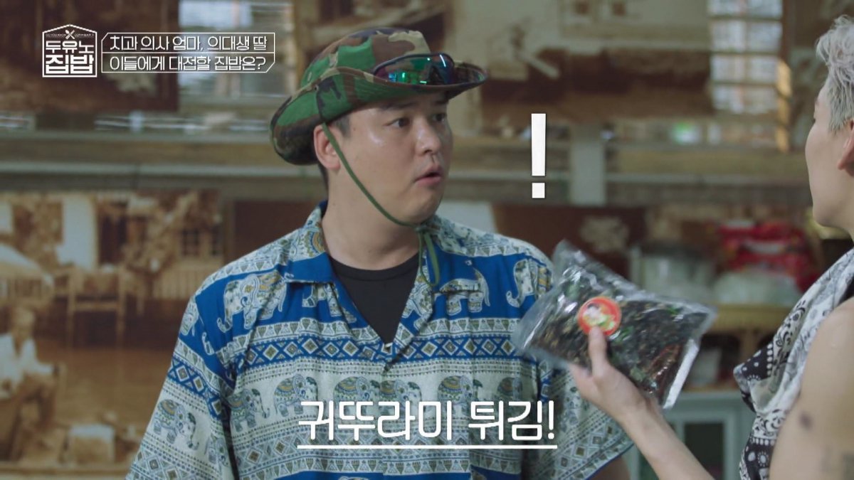 장보기를 마친 이장우는 태국 모녀의 집에 도착했다. 뱀뱀은 본가에서 어머니표 재료를 챙겨 왔다. 입구에 들어서자 잘 꾸며진 정원이 시작으로, 무려 3채의 건물로 구성된 100년 넘은 수상가옥이 두 사람을 놀라게 했다. 집 구경을 마친 뒤, 주방에서 재료를 손질하던 중 뱀뱀은 “집에서 좋은 걸 가져왔다”며 엄마가 손수 만든 태국 국민 간식 귀뚜라미 튀김을 꺼냈다. 생소한 비주얼에 잠시 망설이던 이장우는 한입 맛본 뒤 “새우랑 비슷하다. 자꾸 손이 가네~”, “어머니가 양념을 잘하셨다”며 다소 고장 난 리액션을 가동해 웃음을 안겼다.