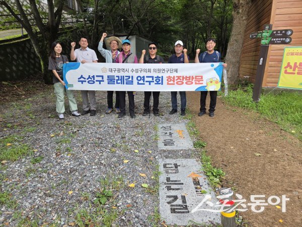 대구 수성구의회 의원연구단체 ‘수성구 둘레길 연구회’가 수성구를 대표하는 둘레길인 ‘생각을 담는 길’ 진밭골길(6코스)을 찾아 현장 점검에 나섰다.연구회는 지난 15일 대덕지를 시작으로 진밭골야영장, 대룡폭포, 백련사, 산림욕장, 청소년수련원까지 이어지는 약 5km 구간을 도보로 탐방하며, 둘레길의 환경 상태와 향후 활용 가능성 등을 살폈다.