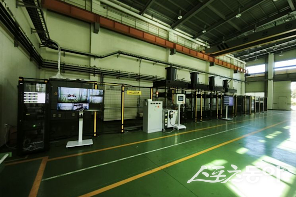 포항소재산업진흥원(POMIA) 내에서 노코드 공정최적화를 위한 지능형 다단프레스 질증장비가 운영되고 있다. 사진제공ㅣ포항시
