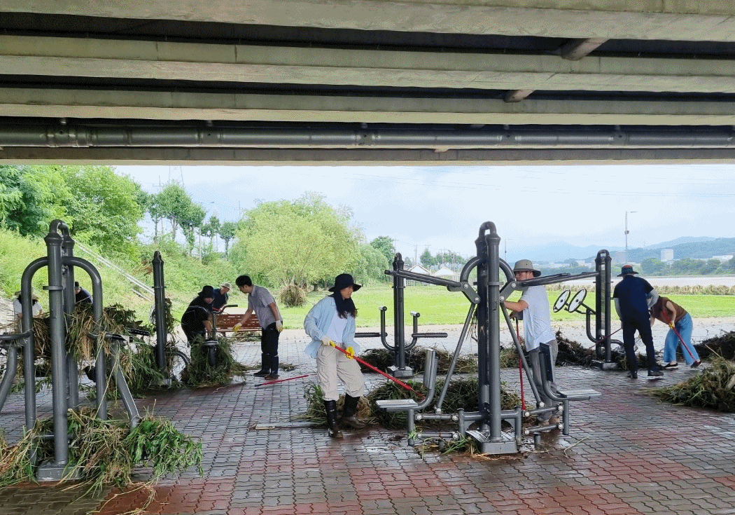 시는 신속한 피해 복구를 위해 20일 새벽 5시 30분부터 직원 비상근무를 실시하여 둔치 공원 피해 복구에 나섰다. 특히 20일부터 23일까지 중장비 31대와 공원녹지과 직원 및 기간제 근로자 총 165명이 복구 작업에 투입되어 구슬땀을 흘렸다.
