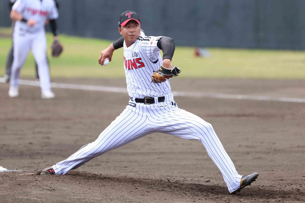 LG 정우영(사진)은 22일 이천 키움과 2군 경기에서 선발등판해 2이닝 4실점을 기록했다. 염경엽 감독은 정우영이 자신의 것을 다해볼 충분한 시간을 주려 한다. 사진제공|LG 트윈스