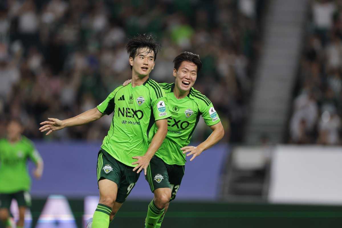 전북은 23일 전주월드컵경기장에서 열린 ‘하나은행 K리그1 2025’ 23라운드 홈경기에서 강원FC를 2-0으로 꺾었다. 중앙 미드필더 김진규(전반 38분·시즌 3호)와 이탈리아 공격수 콤파뇨(전반 42분·시즌 9호)의 연속골로 활짝 웃었다.