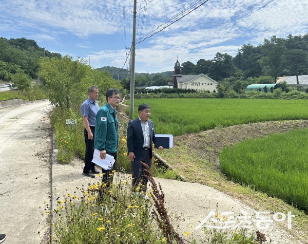 특히, 갈방지구 산사태 예방사업 현장(풍정리 산12)에서는 집중호우 시 발생할 수 있는 산사태와 농경지 피해 우려에 대해 면밀히 살펴보고, 사면 구조물 설치 등 재해 예방 대책을 직접 확인하며 실질적인 개선방안을 논의했다.
