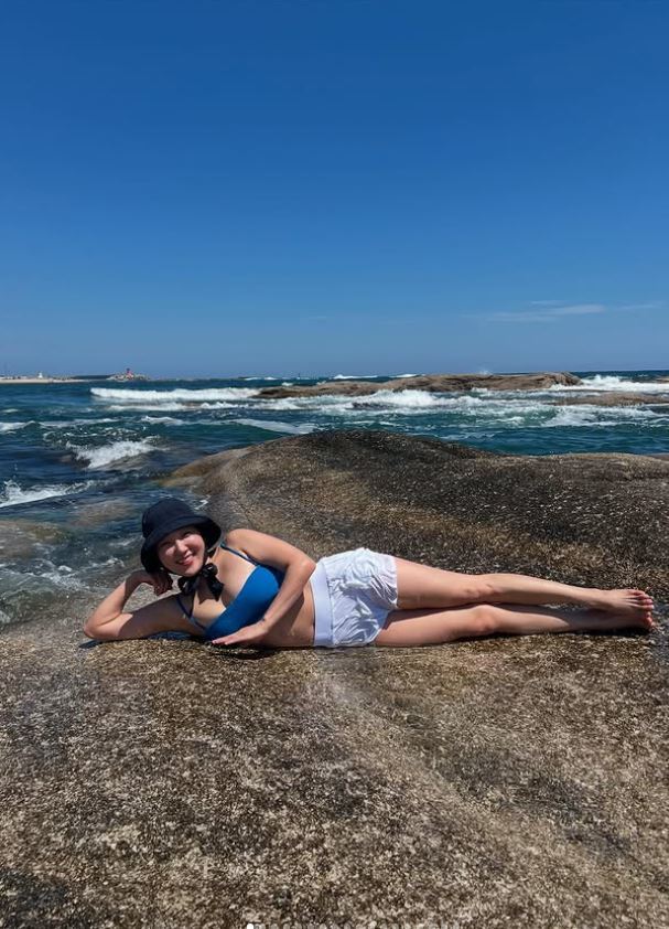 이은지는 인스타그램에 파란색 비키니 톱에 흰색 반바지를 입고 바닷가 바위 위에 누운 사진을 공개했다. 챙 넓은 모자를 푹 눌러쓴 채 여유롭게 웃고 있는 모습은 청순하지만, 시선을 더 끄는 건 볼륨감 넘치는 몸매다. 한동안 방송에서 감추어두었던 건강미와 섹시미를 드러낸 이은지의 또 다른 얼굴이다.