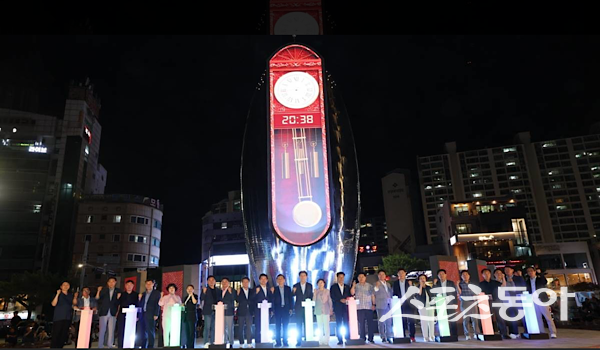 포항시는 영일대해수욕장에 17억 원을 들여 만든 새로운 랜드마크 ‘빛의 시계탑’ 준공식을 지난 26일 가졌다. 수평선 위로 떠오르는 태양과 바다, 빛과 파도의 이미지를 형상화한 이 시계탑 준공을 기념해 LED 패널 조명으로 아름다운 야경을 연출해 눈길을 끌었고, 드론라이트쇼 등 다채로운 프로그램도 이어졌다.