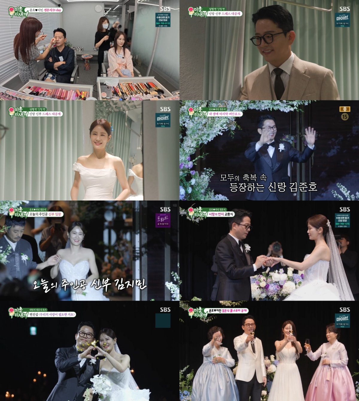 또한 가수 거미, 김지민의 로망이었던 변진섭의 축가가 현장을 가득 채운 뒤 결혼식 2부가 시작됐다. 김지민의 어머니는 두 사람 몰래 깜짝 축하 메시지를 준비했고, 그 진심 어린 말에 감동한 김지민은 결국 눈물을 흘려 보는 이들의 마음을 뭉클하게 했다.